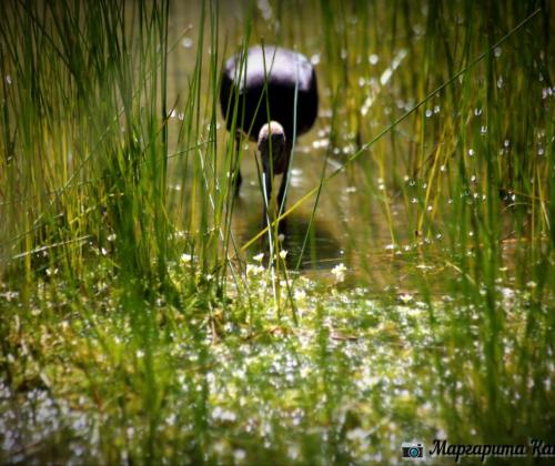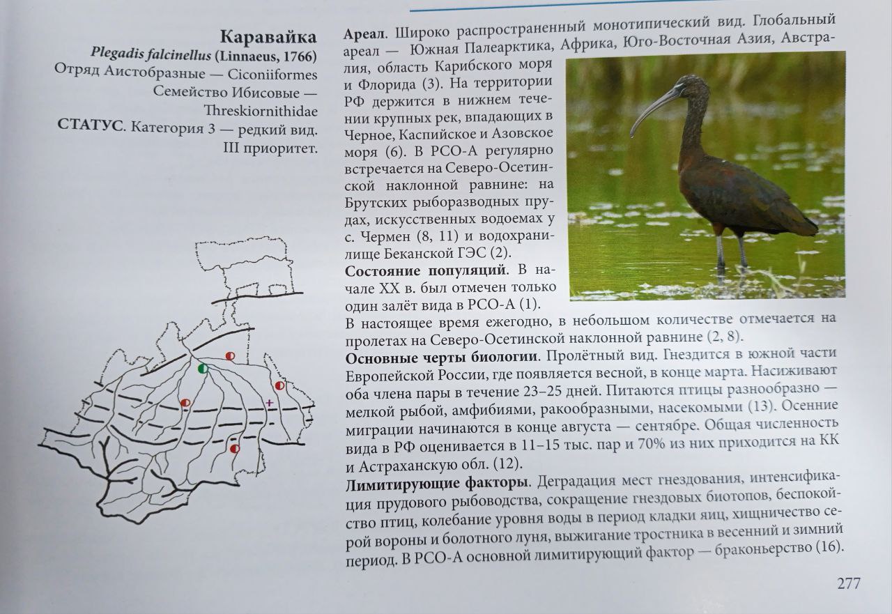 "Это одна из красивейших птиц фауны России. Начинает лететь к нам с конца сентября и летит весь октябрь небольшими группами 2-3 особи, или по одиночке по горным ущельям на перевалы Водораздельного хребта. Птица осторожная малозаметная, но в туманные дни, когда хребет закрыт, она останавливается в кормных местах на озёрах, реках, где питается мелкими водными организмами (ручейниками, червями) и зелёной травой. В это время она уязвима для хищников (шакал, волк, лиса, беркут). Имеется факт добычи каравайки беркутом в Мамисонском ущелье, этот случай описан в Летописи природы РСО-Алания ООПТ за 2023 г. Чаще птица встречается на предгорной равнине Осетии, где много стоячих водоёмов. Но увидеть её трудно, т.к. она предпочитает заросли высокой водной растительности" прокомментировал Юрий Евгеньевич.