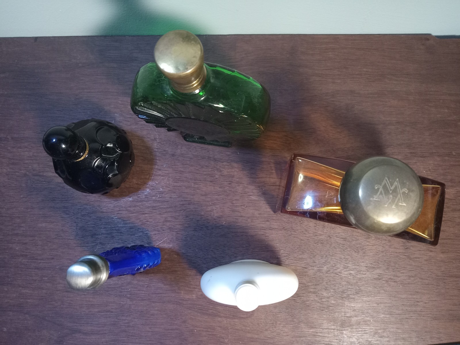 One Round Black Glass bottle with glass stopper by Oscar de la Renta