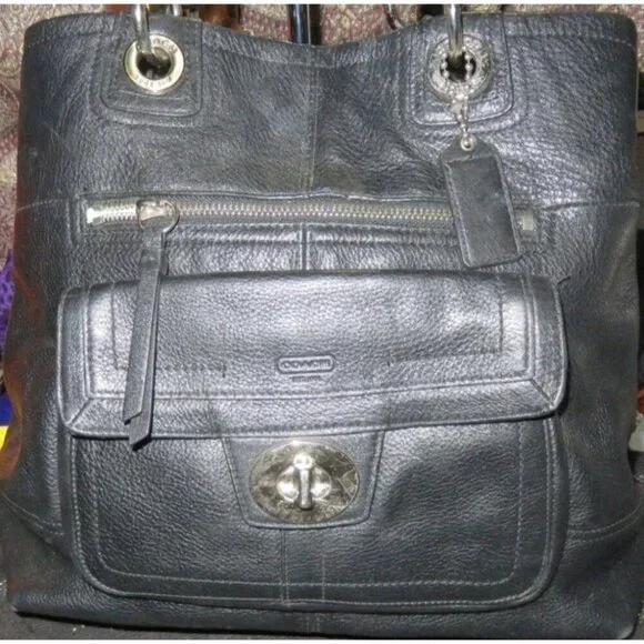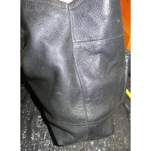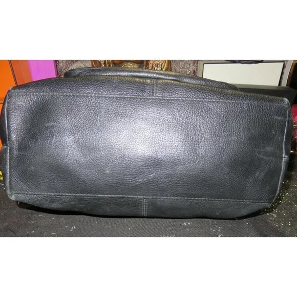 COACH 2010 Hampton 15694 is a stylish black, pebbled leather satchel handbag for women. Featuring a turn lock flap and a size of 12 x 12, this is a classic choice for any occasion.Used but cared for/ I removed a couple of rogue pen marks completely!!All used bags/shoes/leathers may have the following✔️Discoloration✔️Signs of use✔️Scratches scuffing✔️rubs✔️Pls check the pictures closely as they are part of the description.