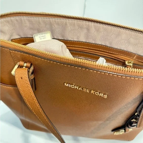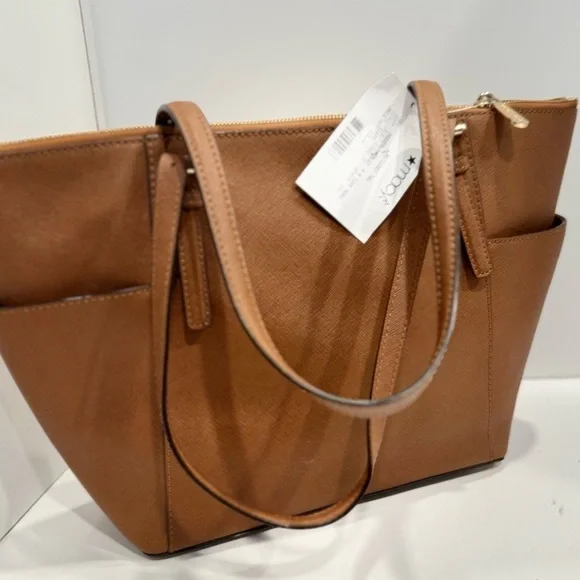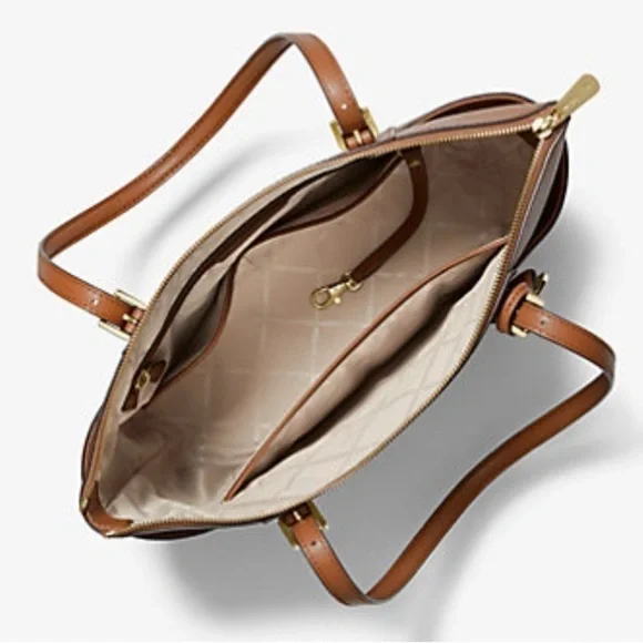100% leather from tanneries meeting the highest standards of environmental performance• Tote bag• Crossgrain leather• 100% leather• Gold-tone hardware• 15”W X 10”H X 4.25”D• Handle drop: 8”• Exterior details: 2 side slip pockets• Interior details: back zip pocket, front padded pocket• Lining: 100% polyester• Zip fastening• Imported•Dust bag not included